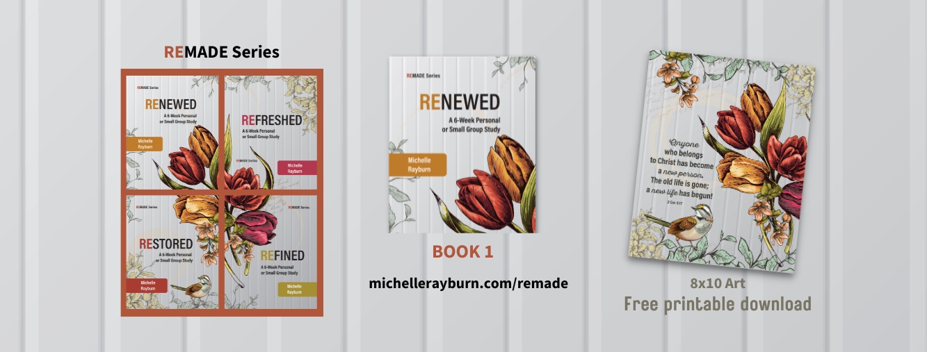 Discover the repurposed and upcycled life. Michelle will help you see how some of your greatest disappointments, mistakes, and hurts can be beautiful treasures. Check out books and Bible studies written by Michelle and compilation projects she's been part of.